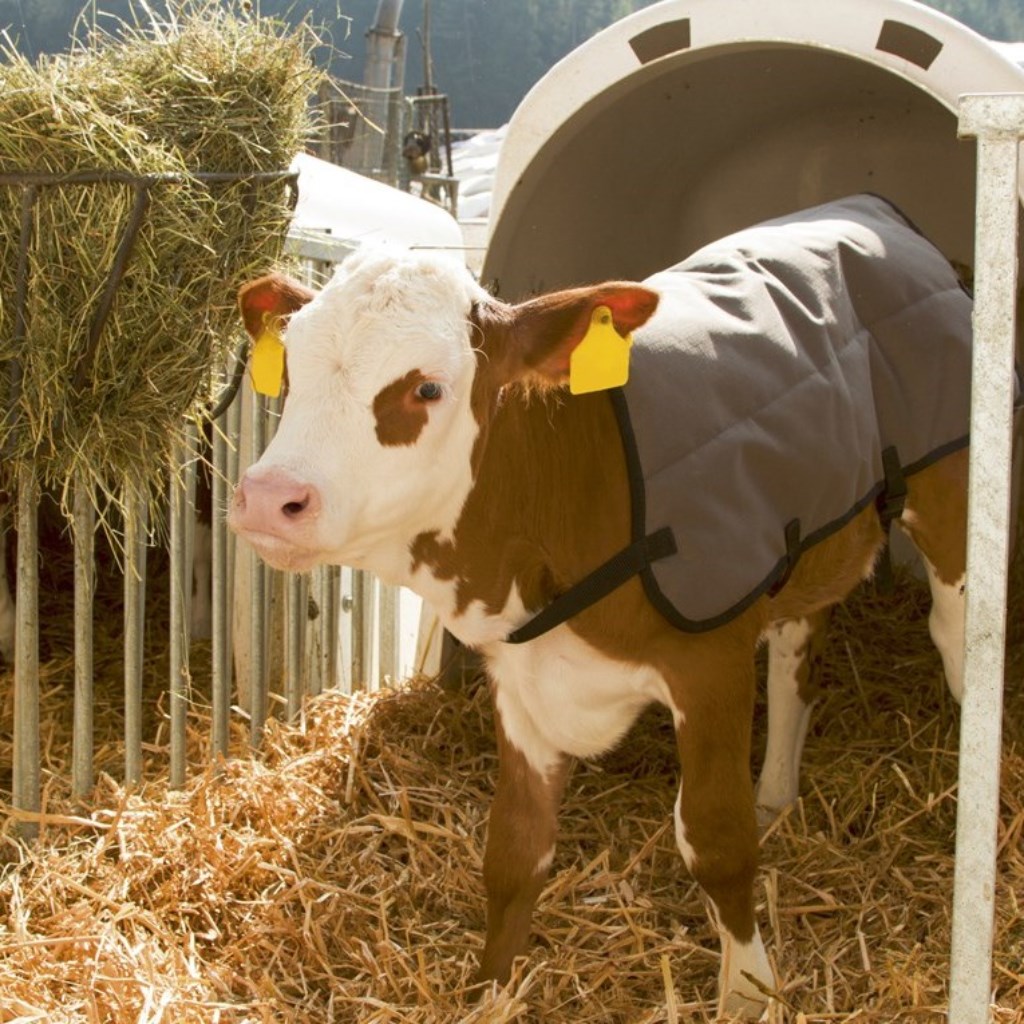 Die Decken bieten den Kälbern aufgrund der sehr guten Atmungsaktivität ein hohes Tragegefühl, ohne übermäßiges Schwitzen zu verursachen. Deshalb fühlen sich die Kälber auch bei Temperaturen unter 10°C wohl. Die Kälber tragen die Decken in der Regel 3 bis 4 Wochen, bei Bedarf aber auch länger möglich.