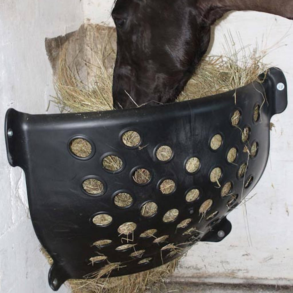 Durch die Montage an der Wand schafft sich der Heuspender selbst ein großes Fassungsvolumen. Das Heu liegt immer luftig und überflüssiges Wasser kann ablaufen. Die Pferde schleudern weniger Futter in die Box was zu geringerem Futterverlust und einer effizienteren Futternutzung führt. Die Box bleibt zudem länger sauber bei hygienischer Fütterung ohne Futterverlust. Der Heuspender unterstützt gesunde Fresshaltung und reduziert Staubbelastung.