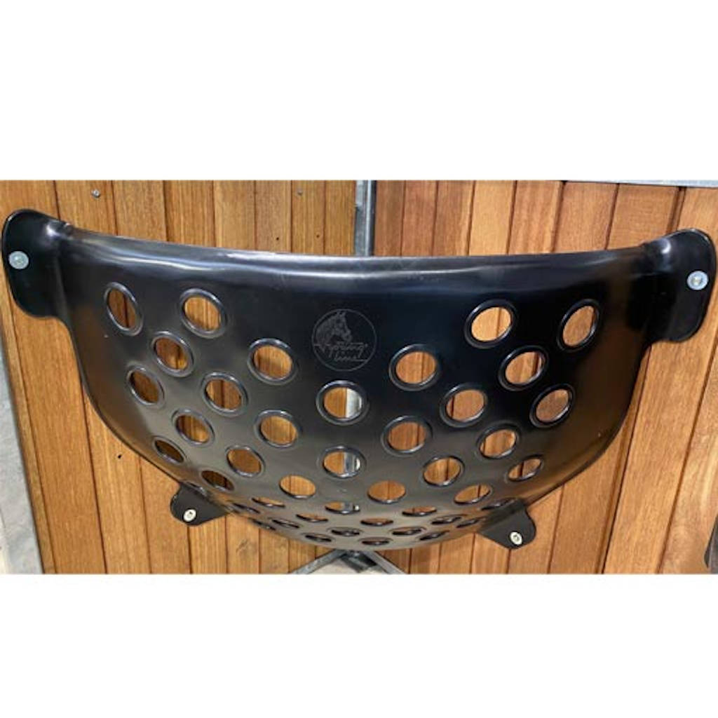 Mit 44 Lüftungslöchern und zusätzlichen Schlitzen an den Seiten unterstützt die Raufe eine effektive Luftzirkulation. Diese bewirkt, dass Staub und Verunreinigungen ausgefiltert werden, wodurch die Hygiene verbessert und Futterreste vermieden werden. Außerdem fördert die erhöhte Fressposition eine natürliche Körperhaltung und unterstützt einen gesunden Zahnabrieb. Ein weiterer gesundheitlicher Vorteil: Da Pferde hoch fressen, sinkt die Staubbelastung in der Atemwegshöhe – was potenzielle Atemwegsrisiken mindert.