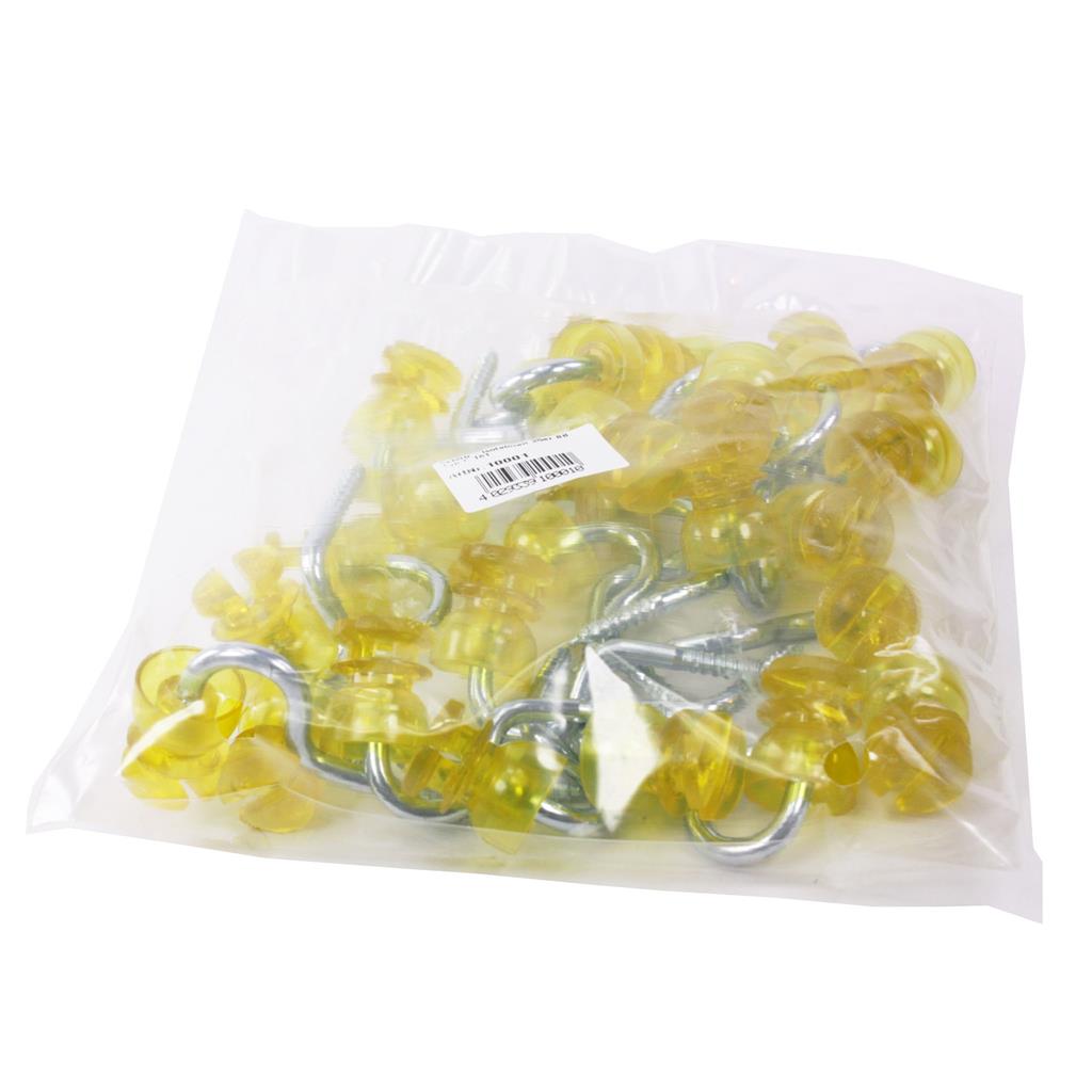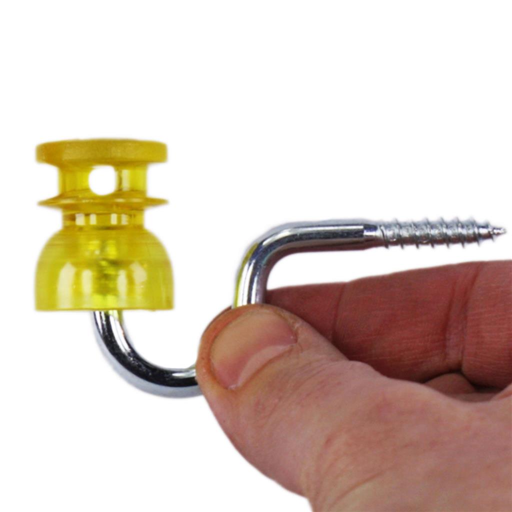 Die Schlitzisolatoren »C161« 25x, für Weidelitze, Draht ist gelb transparent. Mit gefrästem Holzgewinde - somit leichter einzudrehen. Die Schlitzisolatoren sind aus eigener Produktion, fast unzerbrechlich, wetterfest, für Litzen, Drähte und Bänder. Aus Polycarbonat, mit verz. Eisenstütze 6mm, Beutel à 25 Stück