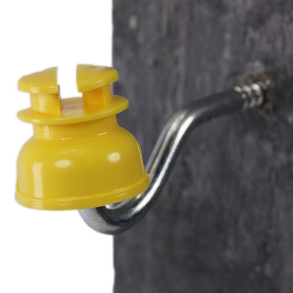 Die Schlitzisolatoren »S151« 50x, für Litze, Draht sind gelb. Mit gefrästem Holzgewinde - somit leichter einzudrehen, aus eigener Produktion, fast unzerbrechlich, wetterfest. Schlitzisolatoren für Litzen, Drähte und Bänder. Aus Polyethylen, mit verz. Eisenstütze 5,3mm, Beutel à 50 Stück