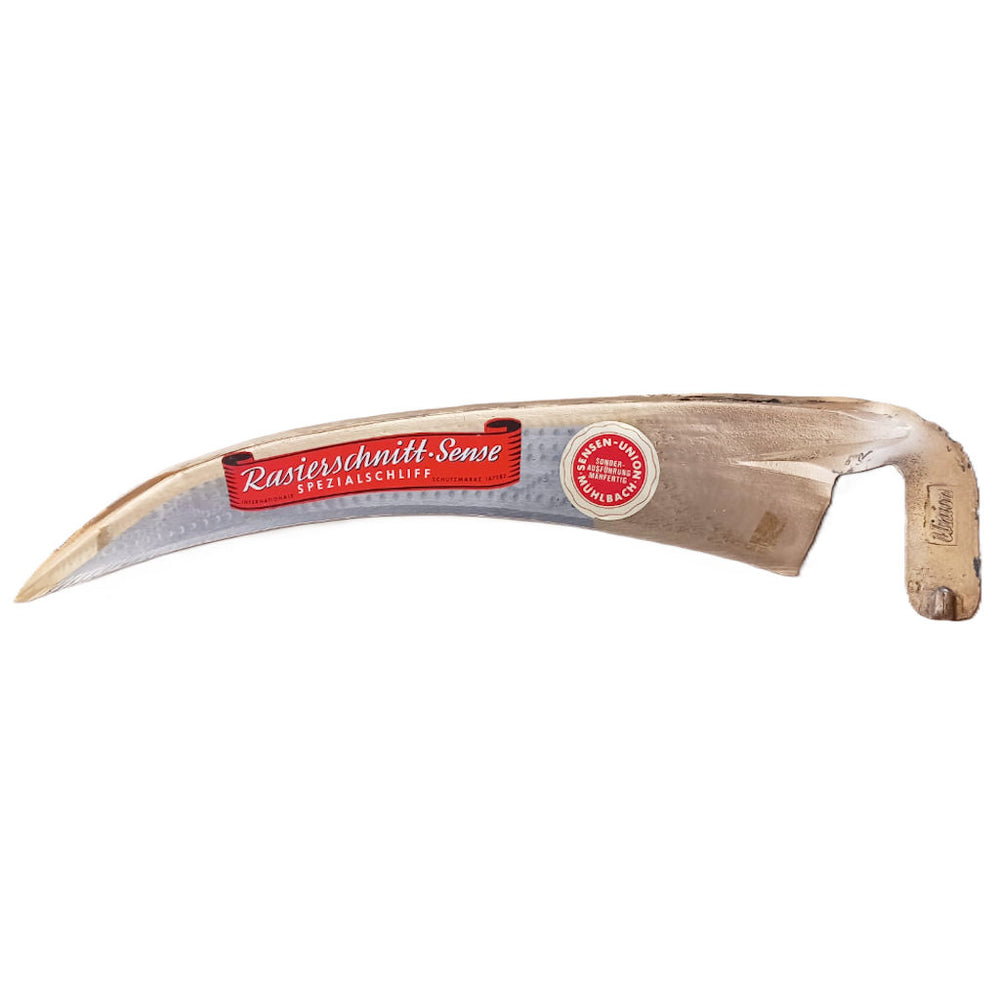Die Sense »Rasierschnitt« TOP gedengelt, mit Plastikschneidschutz ist 70cm breit. Mähfertig gedengelt, mit Plastikschneidschutz, ohne Stiel.