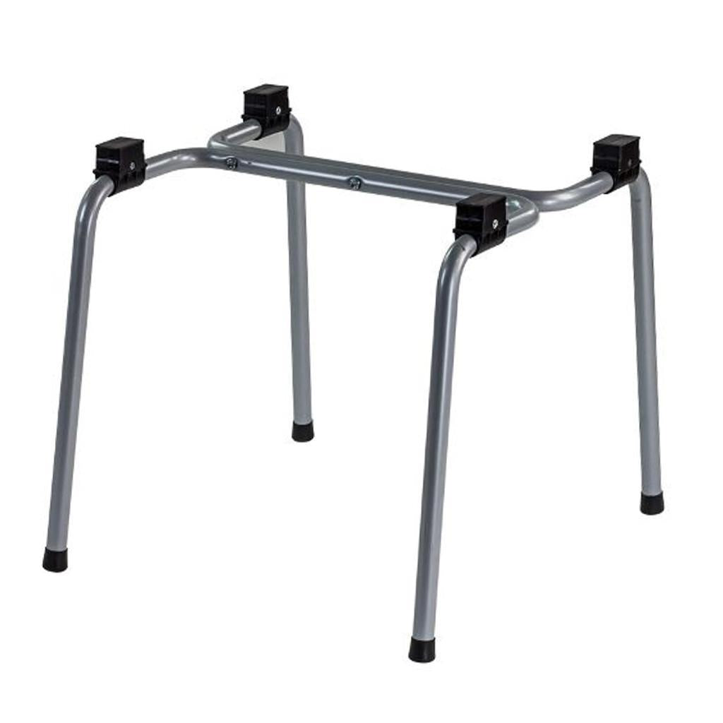 Das Gestell besteht aus zwei gleichartigen Teilen, welche mit Schrauben in der Mitte fixiert werden. Die vier beiliegenden Kunststoffhalterungen montieren Sie danach auf das Gestell und setzen anschließend die Spülwanne auf die Halterungen, um somit das Tischgestell zu stabilisieren. Eine Querstrebe ist also für die Montage nicht erforderlich und demnach im Lieferumfang nicht enthalten.