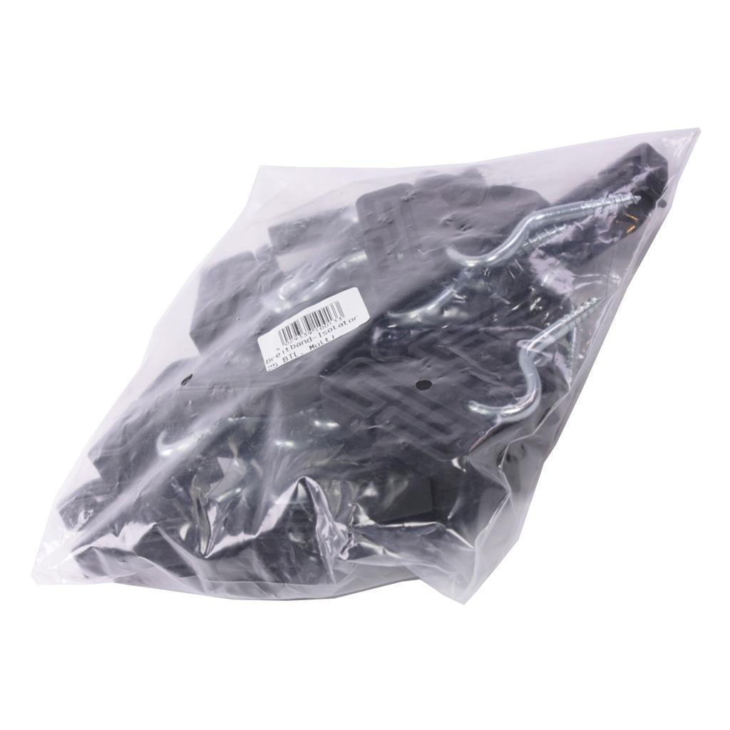Die Breitband Isolatoren »Multi« 25x, für Litze, Band mit M6 Gewinde sind schwarz. M6 x 30mm. Die Breitband Isolatoren aus Nylon, mit verz. Eisenstütze, für Bänder bis 40mm und mit Seilklemme, Beutel à 25 Stück