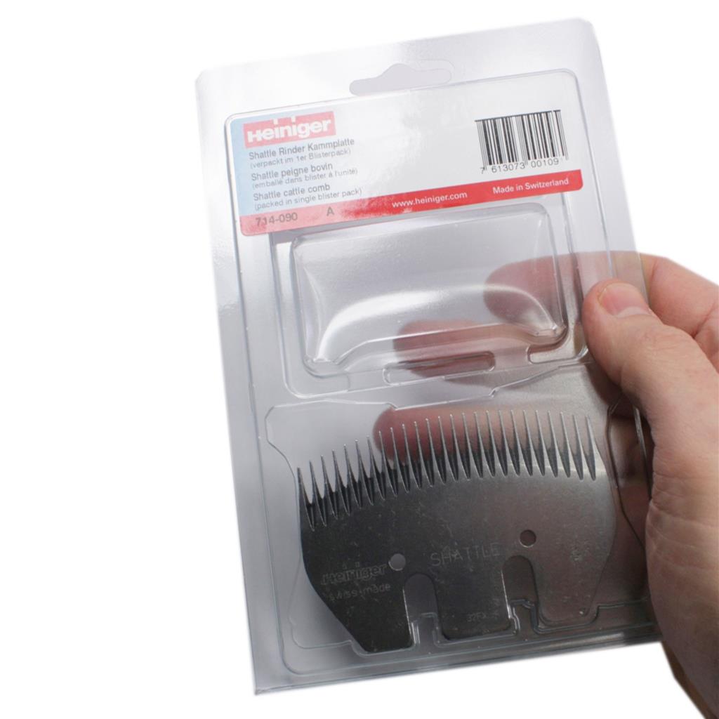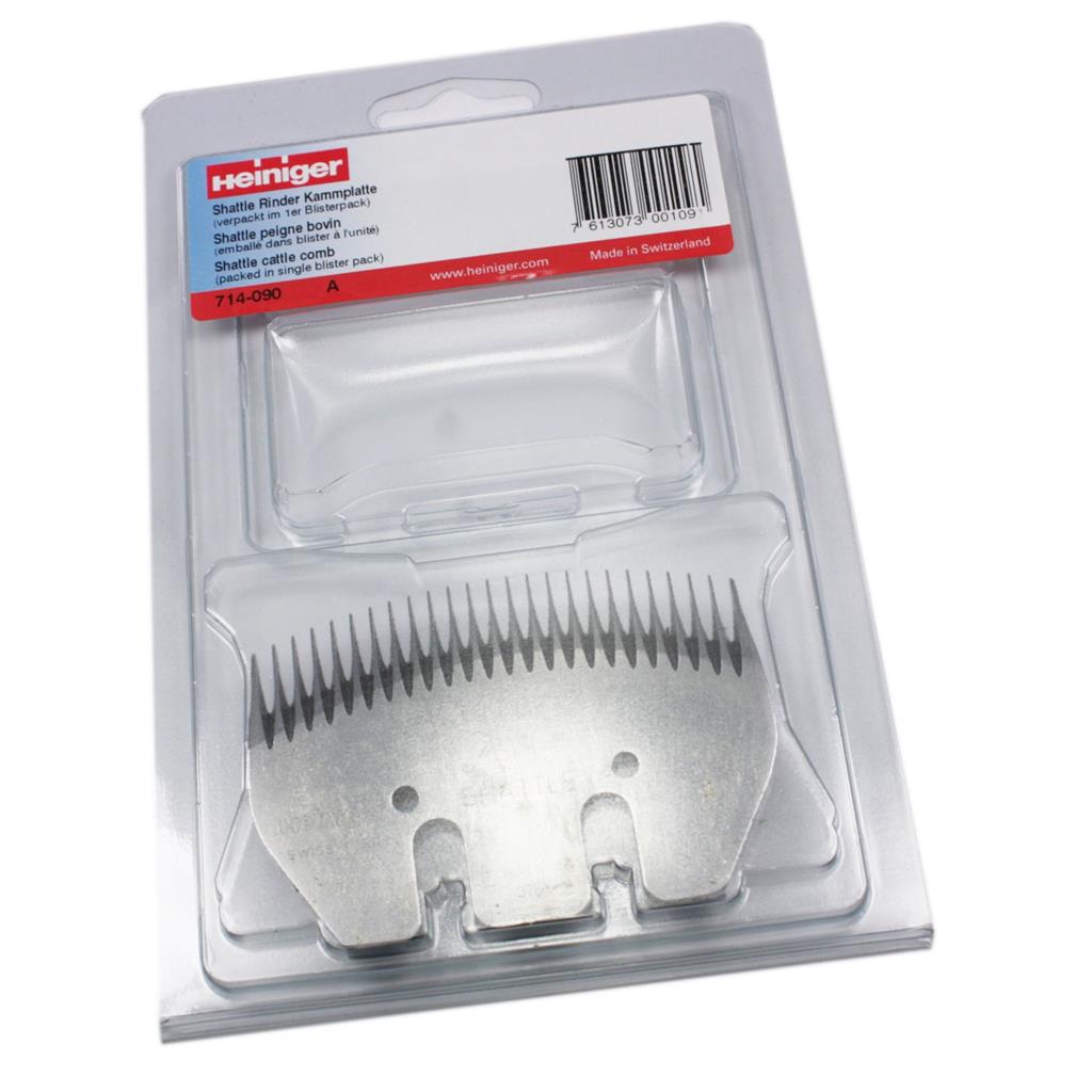 Heiniger Shattle 714-090 Schermesser für Rinder. Für die professionelle Rinderschur mit Schafobermesser hergestellte Heiniger Schermesser. Zum Scheren von Vieh mit einer Schafschermaschine mit normalen Schafscher-Obermessern. Gefertigte Schermesser aus Spezialstahl für lange Haltbarkeit. Nachschleifen ist mit den Schermessern mehrmals möglich.