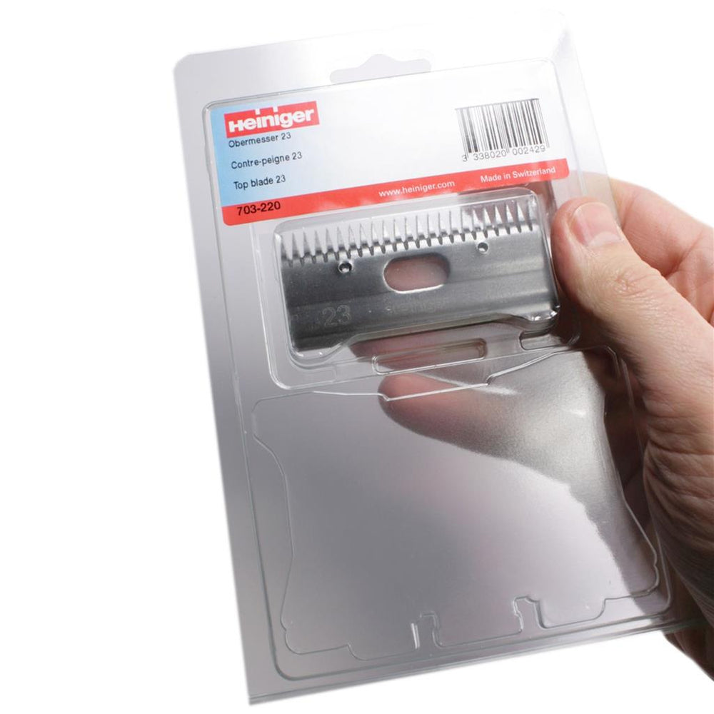 Heiniger 703-220 Obermesser 23 Zähne. Für die professionelle Schur hergestellte Heiniger Schermesser. Gefertigte Schermesser aus Spezialstahl für lange Haltbarkeit. Nachschleifen ist mit den Schermessern mehrmals möglich.