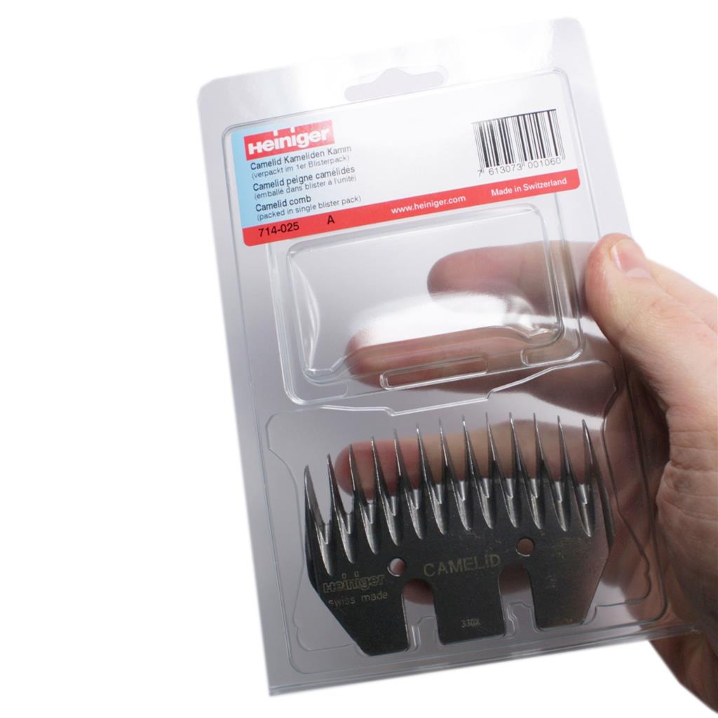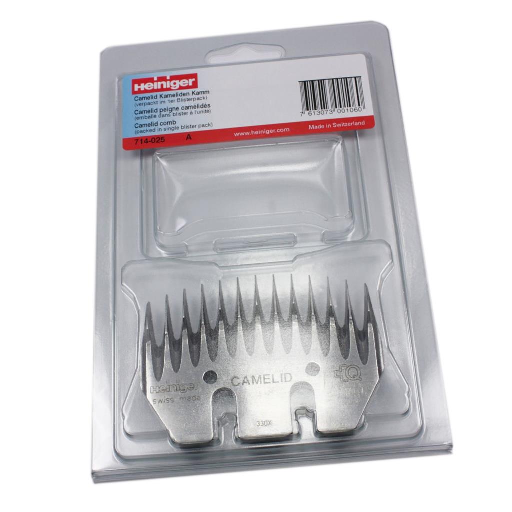 Heiniger Camelid 714-025 Schermesser. Spezialkamm zur Schur von Lamas, Alpakas, Vicugnas, Guanakos und Kamelen. Gefertigte Schermesser aus Spezialstahl für lange Haltbarkeit. Nachschleifen ist mit den Schermessern mehrmals möglich.