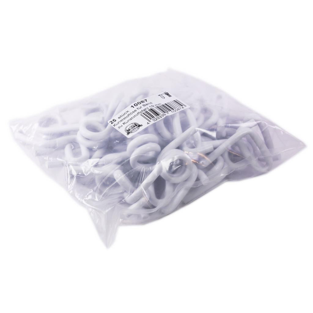 Der Klemmisolator »Kunststoffpfahl« 25x, für Ø 19mm Pfahl, Band ist weiß. Klemmisolator mit Kunststofföse für Kunststoffpfahl 19mm, Bänder bis 40mm, Beutel à 25 Stück