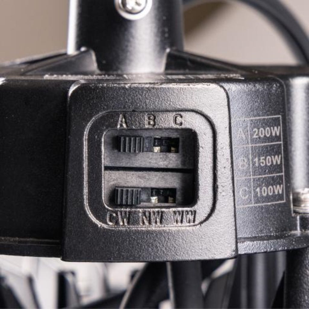Dieser Hallenstrahler bietet einen wählbaren Leistungsbereich von 100W, 150W und 200W über einen integrierten Schalter, was es ideal für verschiedene Umgebungen wie Ställe, Lagerhäuser, Industrieanlagen und gewerbliche Räume macht, die eine außergewöhnliche Lichtqualität erfordern.