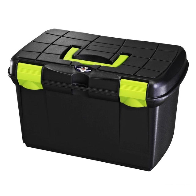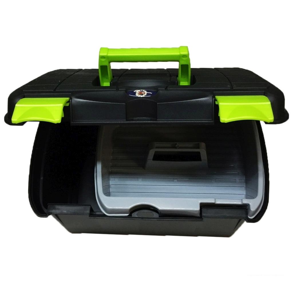 Die Pferdeputzbox »Reinlich« verstaut Pferdepflege und hat die Farbe pistazie. Das geschlossene Modell mit Tragegriff hat ein herausnehmbares Innenteil.