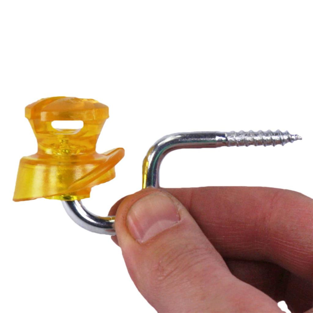 Die Schlitzisolatoren »Herkules« 25x, für Litze, Draht sind gelb transparent. Die Schlitzisolatoren sind mit gefrästem Holzgewinde - somit leichter einzudrehen, aus eigener Produktion, fast unzerbrechlich, wetterfest. Für Litzen, Drähte und Bänder. Schlitzisolatoren aus enorm schlagfestem Polycarbonat, mit verz. Eisenstütze 6mm, auch für Bänder bis 10mm, Beutel à 25 Stück