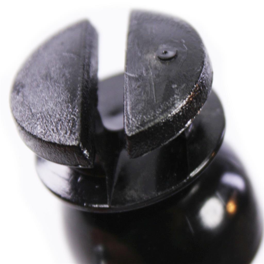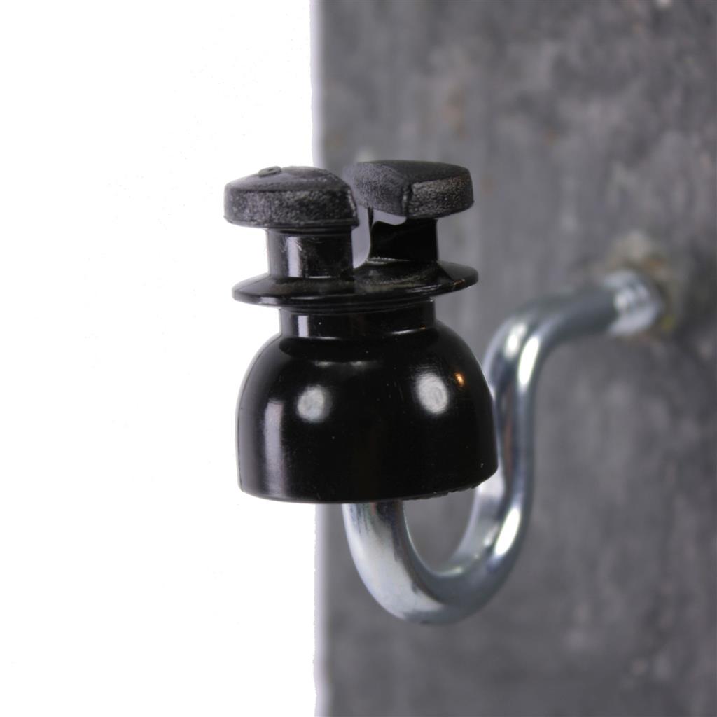 Die Schlitzisolatoren »S161« 25x, für Litze, Draht sind schwarz. Mit gefrästem Holzgewinde - somitsind die Schlitzisolatoren leichter einzudrehen, aus eigener Produktion, fast unzerbrechlich, wetterfest, für Litzen, Drähte und Bänder. Aus Polyethylen, mit verz. Eisenstütze 6mm, Beutel à 25 Stück