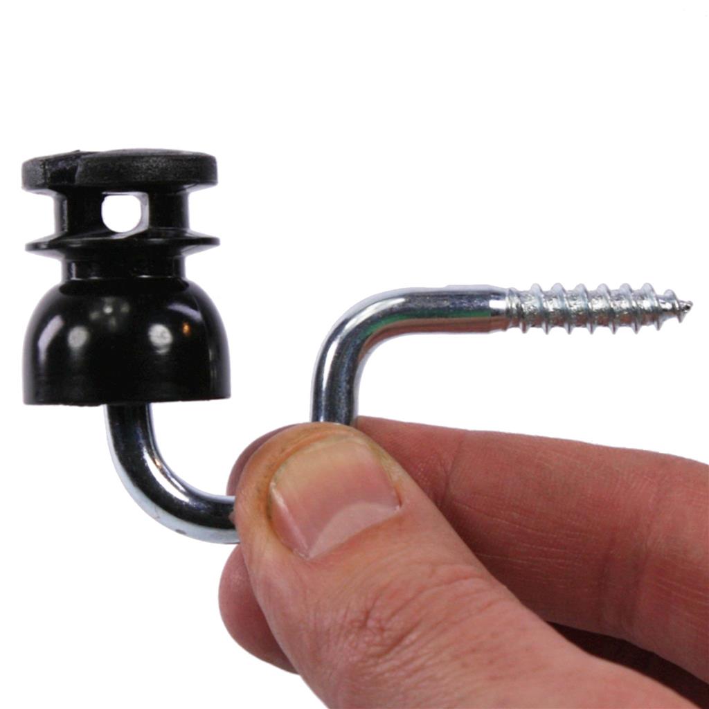 - Schlitzisolatoren an Ø 6mm Stütze mit ca. 4,5cm Abstand zum Weidezaunpfahl
