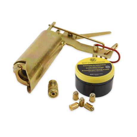 Noch effektivere und schnellere Wühlmausbekämpfung bei Platzierung von zwei Fallen pro Wühlmausgang! Die präzisen und hochqualitativen Wühlmausschussgeräte »Auber« werden inklusive der passenden 50x Schussfallen-Spezialpatronen (Kaliber 9 x 17) geliefert. Der doppelt gesicherte Schussapparat aus Aluminium-Druckguss gegen Wühlmäuse gehört zu den wirkungsvollsten und zuverlässigsten Mitteln, um die lästigen Nager schnell aus dem Garten, Beet und Grundstück zu entfernen. Einfach im Gebrauch und stark in der Wirkung ist diese Wühlmausschussfalle selbst durch mehrere Zentimeter Erdreich noch erfolgreich. Hierfür wird eine Spezial-Platzpatrone Kaliber 9x17 benötigt.