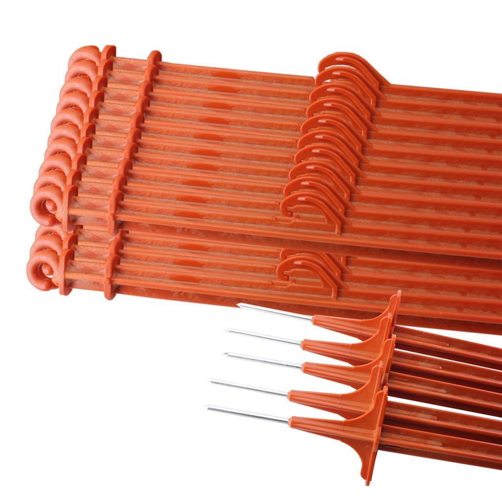 Die Weidezaunpfähle »Variant« 25x, GFK Kunststoffpfähle sind orange und 100cm lang (1 Kopfisolator, 4 Drahtösen). Mit der Länge von 1m sind die Glasfaserpfähle für Milchkühe, Kälber, Ziegen, Pony, Esel Weidezäune bestens geignet. Wildabwehrzäune und andere Absperrungen sind mit diesen Profi Kunststoffpfählen aber auch kein Problem. Eine optionale Verlängerung um 45cm, die sich auf die Weidezaunpfähle aufstecken lässt ermöglichen auch den Einsatz für Pferdezäune und Portionsweiden mit Großpferden.